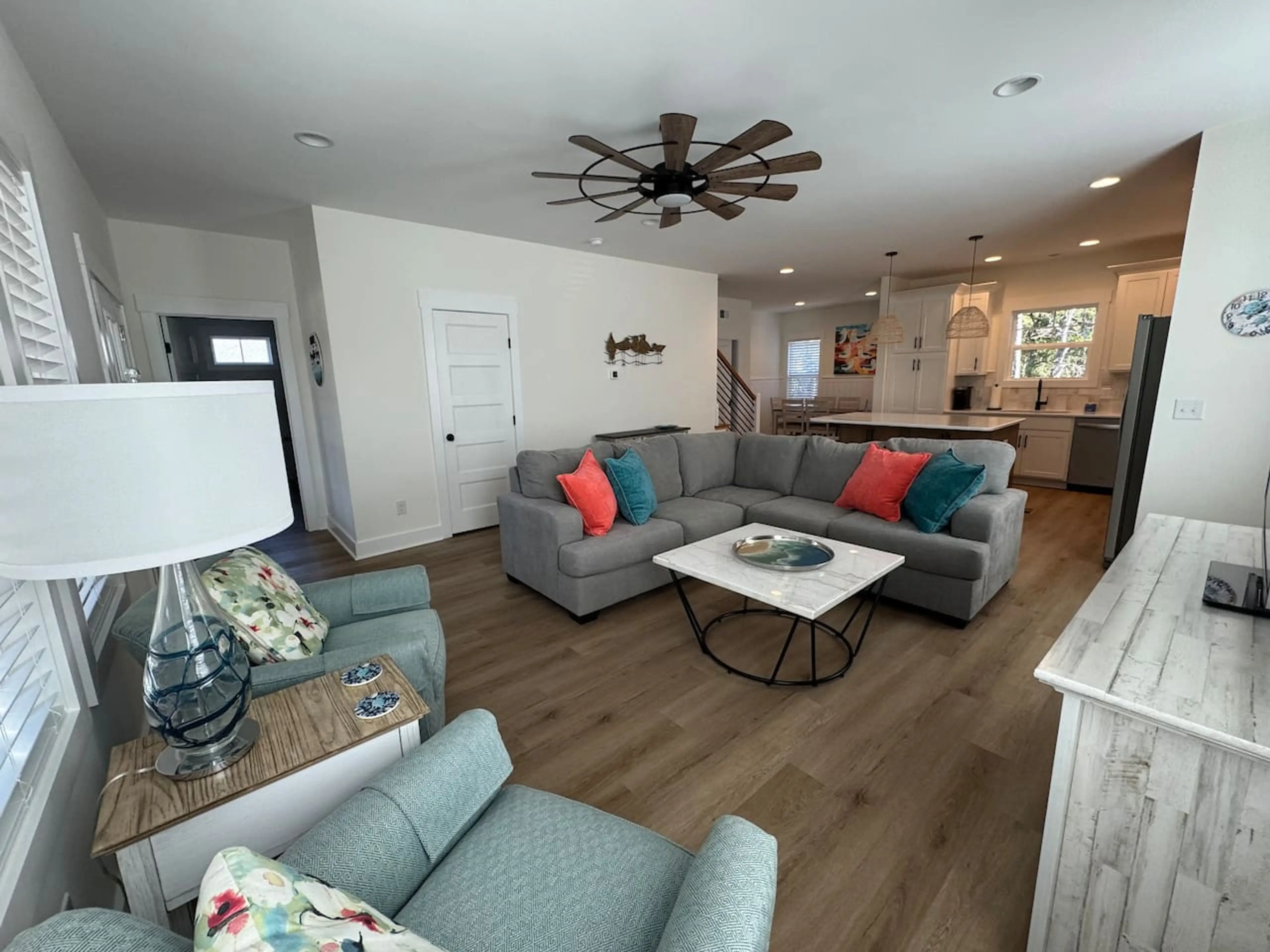 Your family will be close to everything when you stay at this centrally-located, new construction home. Direct beach access only a short 7 minute walk to the beach - even closer to Community Center, park, restaurants, and grocery store. Master suite on main living area, queen bedroom and full-over...